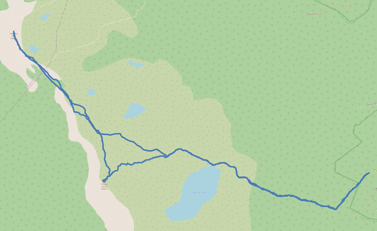 - Snowy South -> Nevada Peak: 1 hour, 15 mins