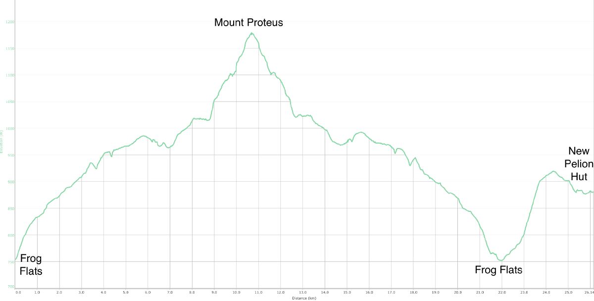 - Frog Flats to New Pelion: 1 hour 15 mins