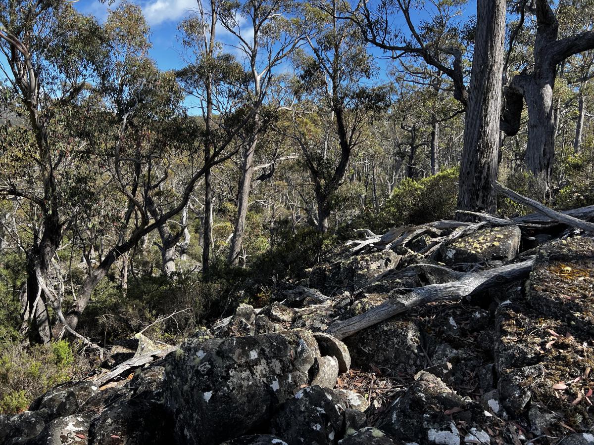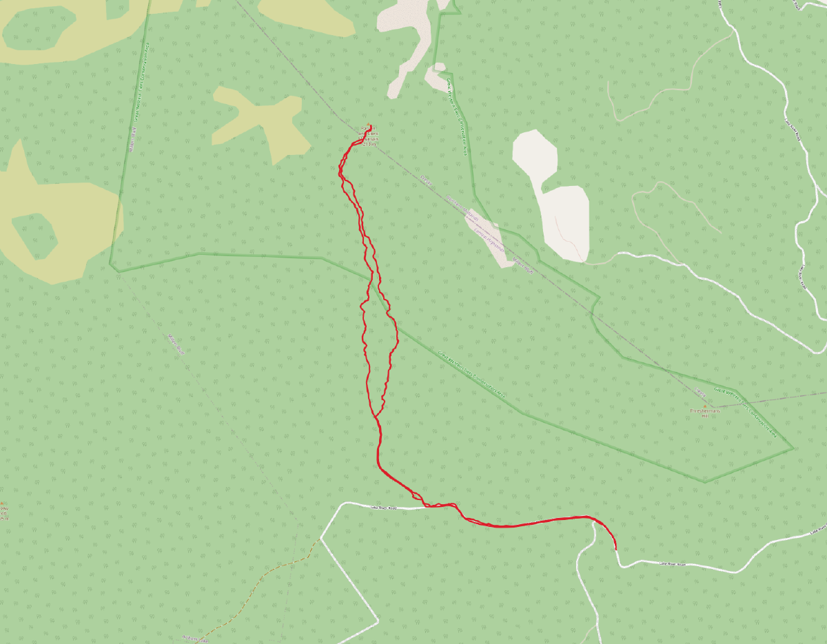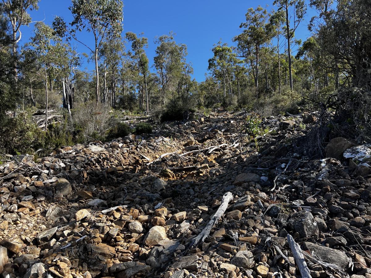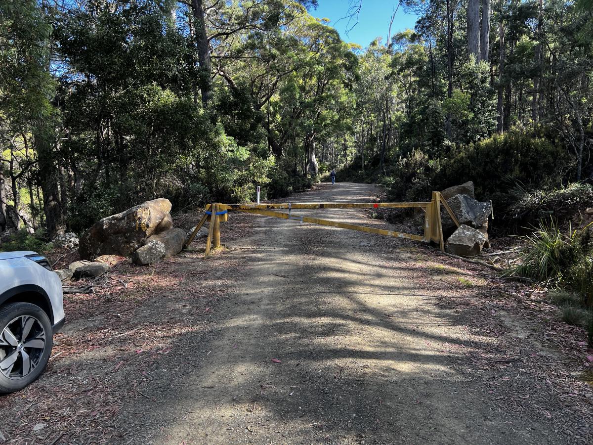 The walk starts along the road for about 20 minutes or so, until you come to an old forestry coupe with a road leading straight up the hill.
