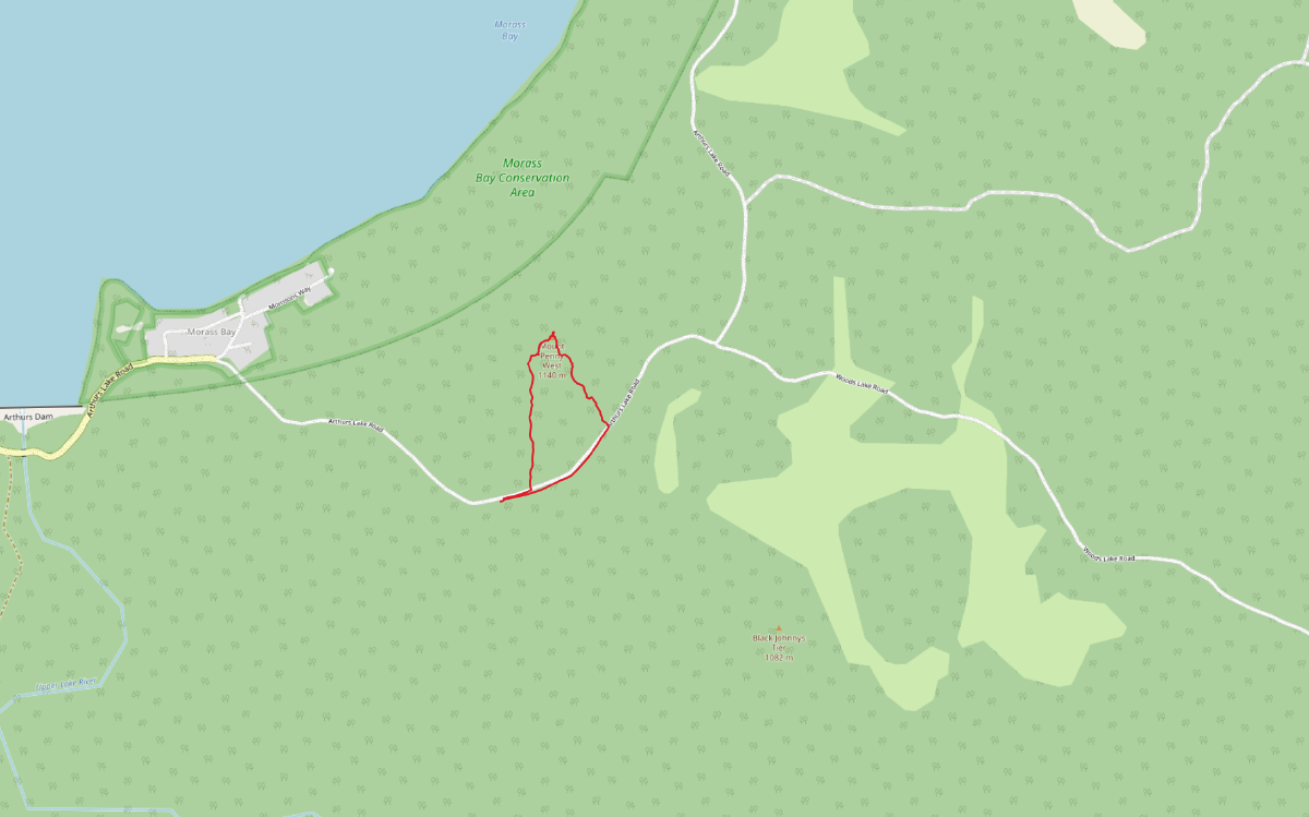 A beautiful view over Arthurs Lake to one side, and a pretty picture of where I’d come on another.