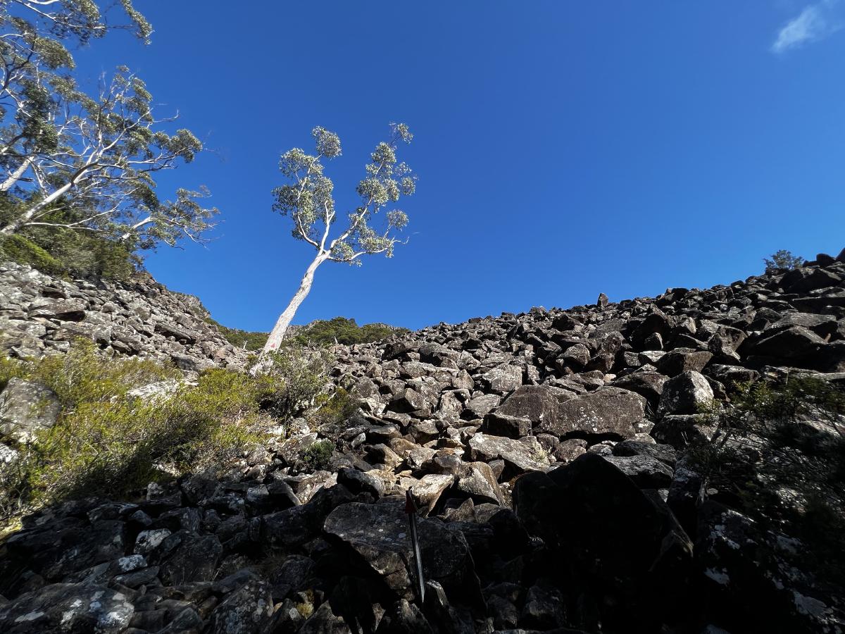 The first part of the walk is very enjoyable, and is through a lovely myrtle forest and it slowly gains hight until you come to a large scree field.