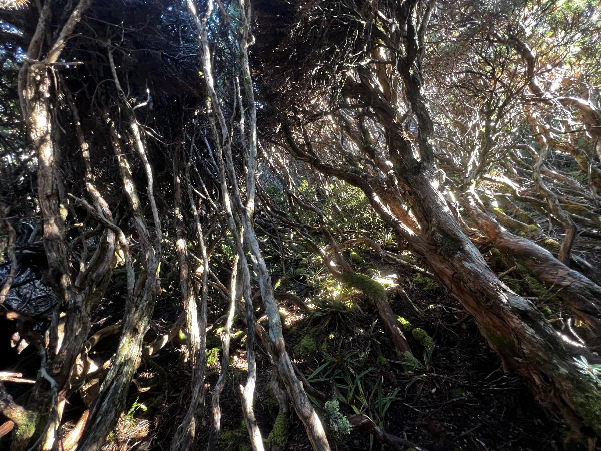 The first section looks daunting but isn’t too bad thanks to a fairly clear pad through the scrub. Without it, this would be a slow and frustrating climb.