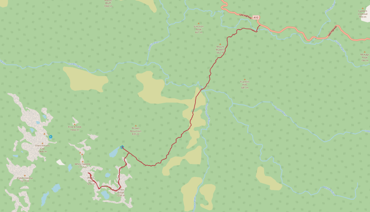 An early start saw me backtracking a short way up the Frenchman’s Cap track before branching off toward Agamemnon.