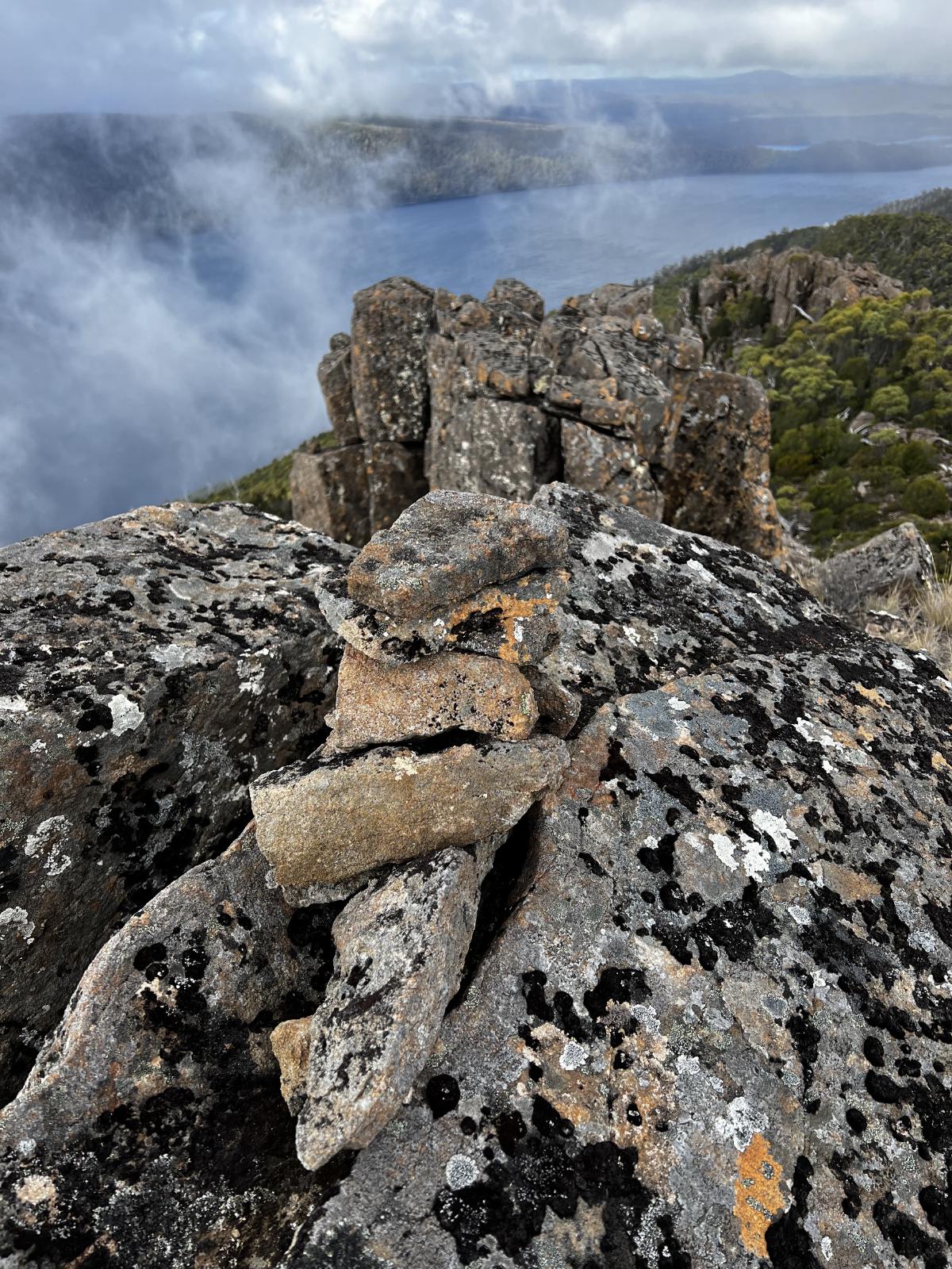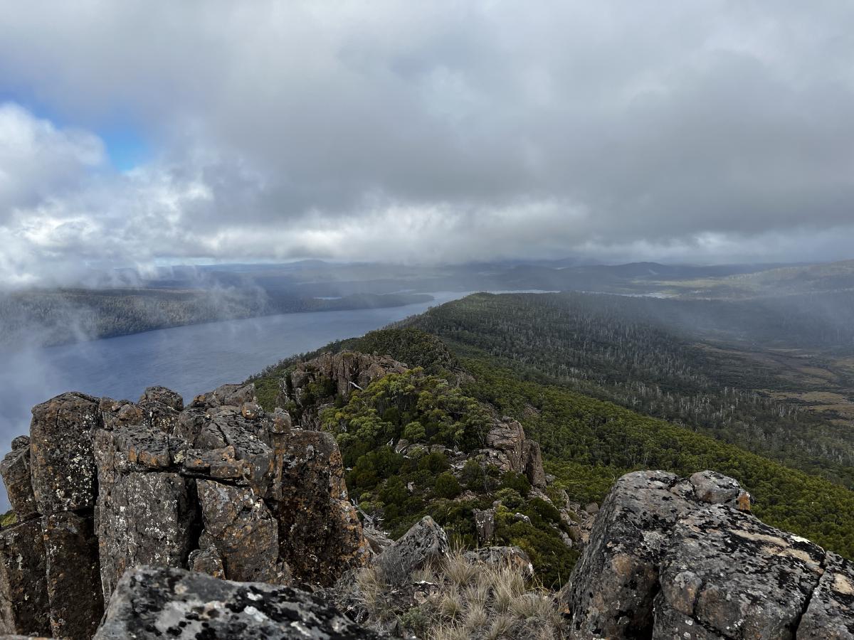 The ground became a bit rougher in places, and eventually I scrambled upward. The climb wasn’t straightforward, but it was rewarding. I wasn’t sure which of the summits was the true peak, so I made a point of visiting both. From the top, Lake St Clair stretched out below. Clouds hung low, but there was still plenty to see, and it was worth every step.