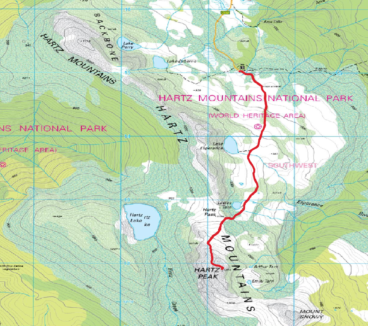 We got started, and began the easy walk along the track, slowly gaining altitude as we walking to to the turnoff to Lake Esperance.