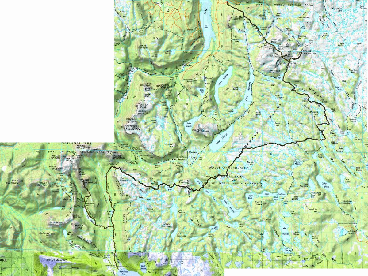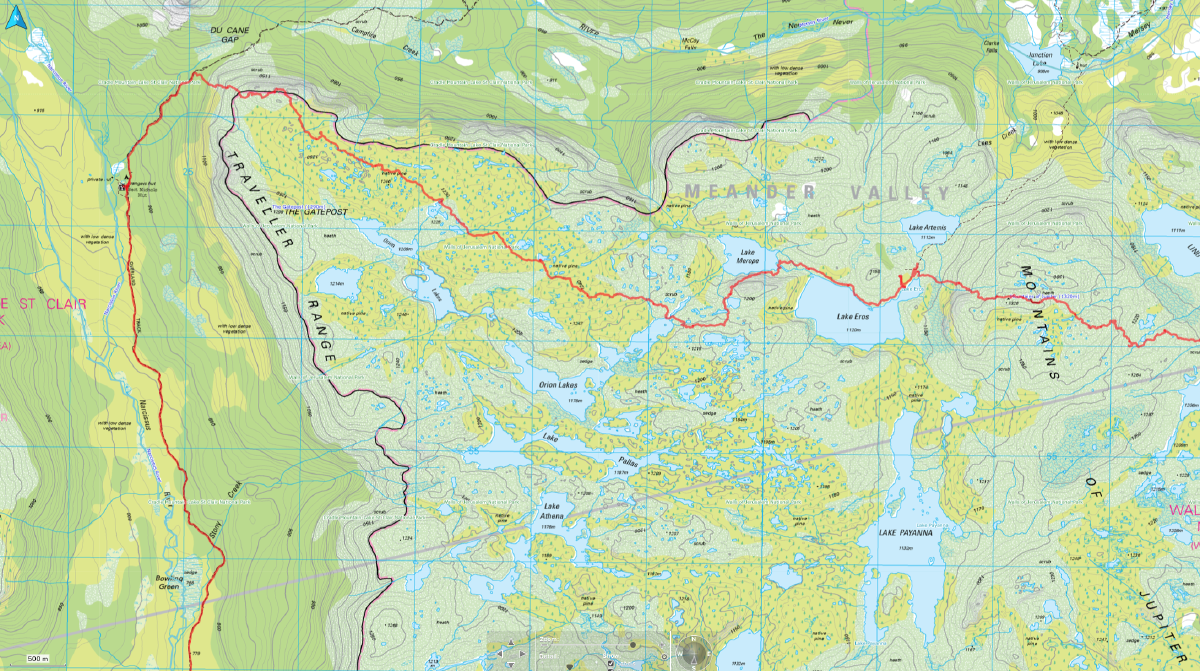 New mountains and new area covered. And best of all, we’d made it from The Walls to Lake St Clair.