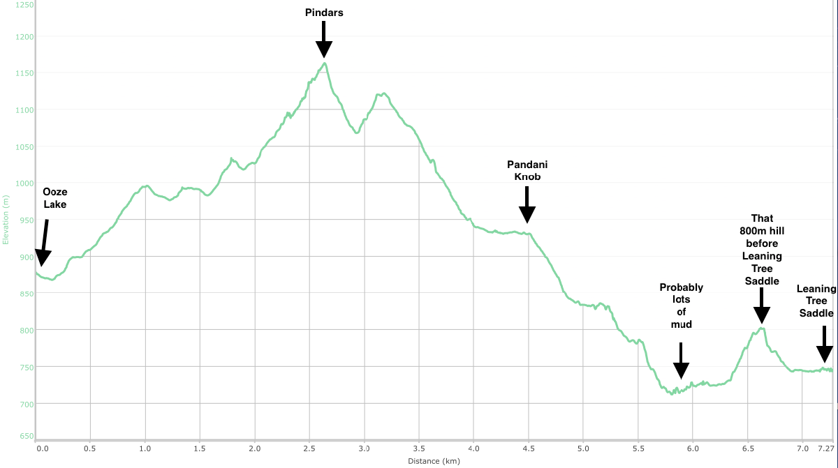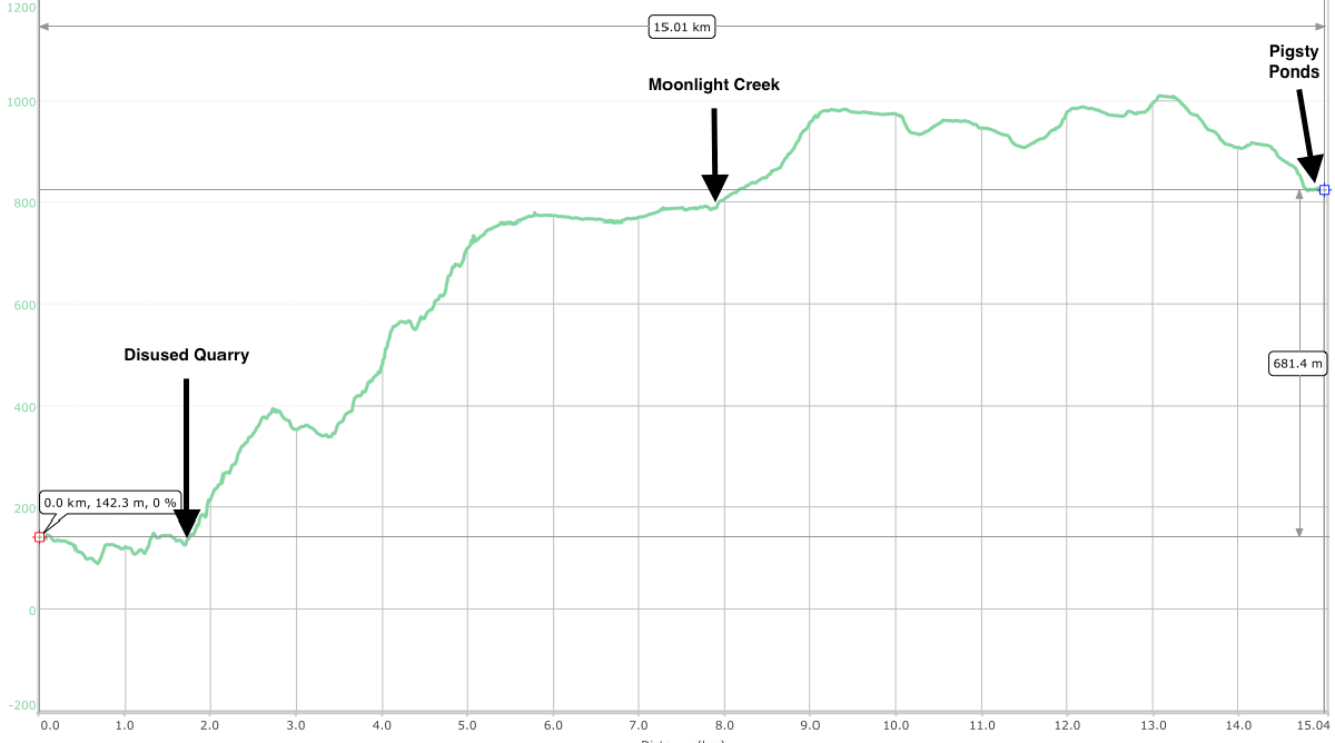 And here’s the elevation plot of the day from Pigsty Ponds to Ooze Lake: