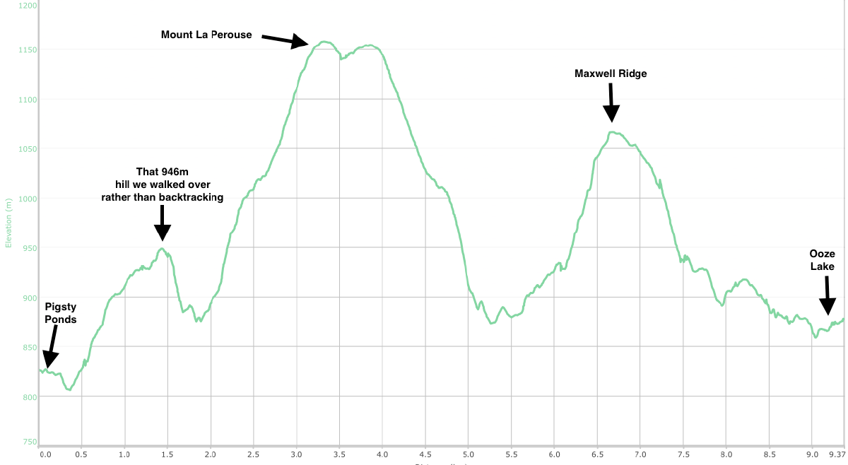 Day 2. Pigsty Ponds to Ooze Lake (via Mount La Perouse)