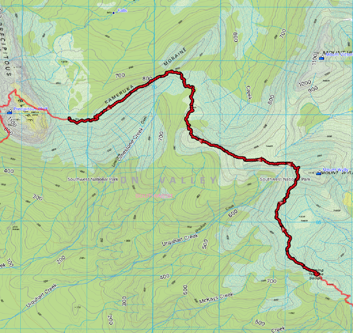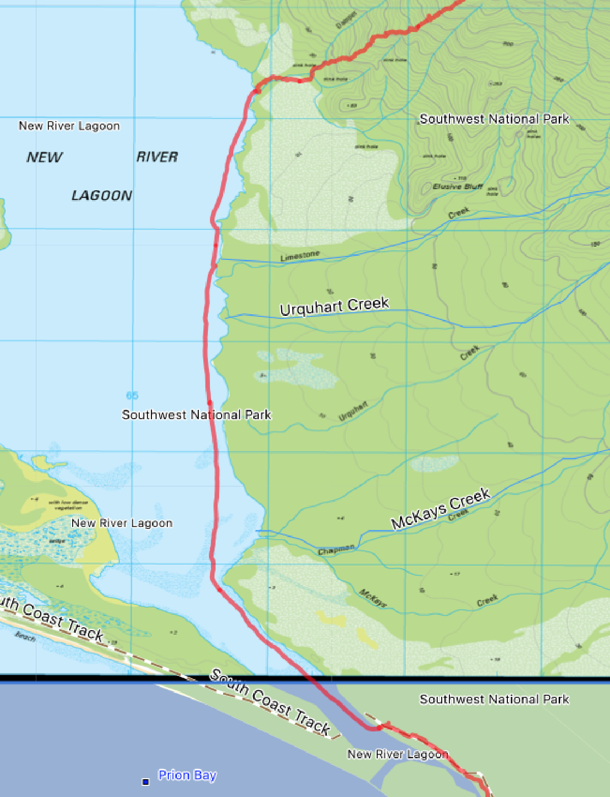 We had planned a rather long - and as it would turn out rather optimistic - journey over the Southern Ranges to Precipitous Bluff, turning north to Vanishing Falls, then back via New River Lagoon to the South Coast Track for an exit (pursued by a bear.)