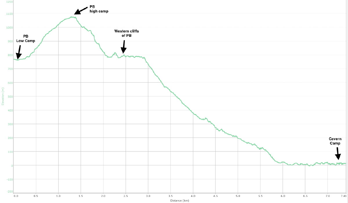 We wanted today to get to Wylly Plateau camp, but I think we both knew it was unlikely.