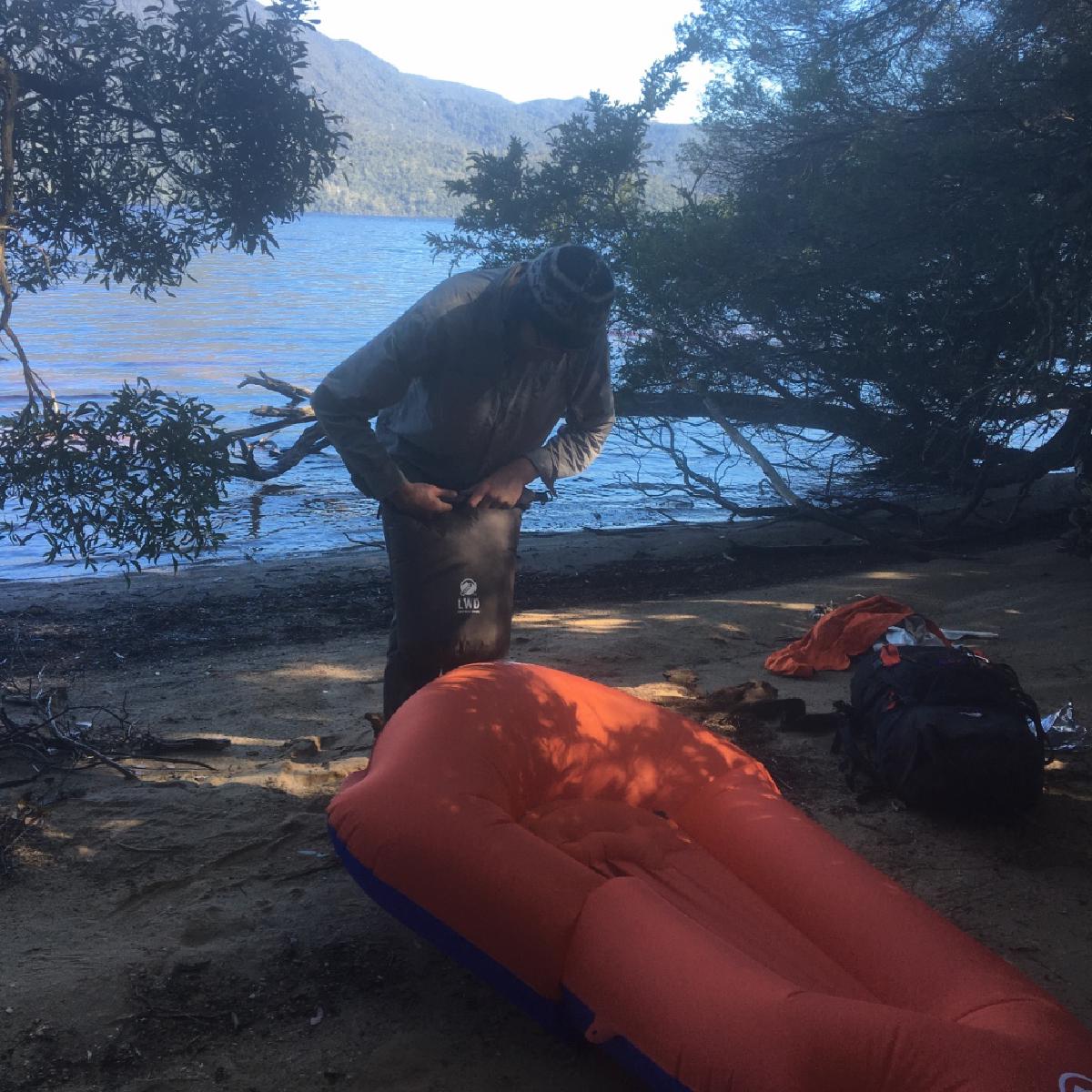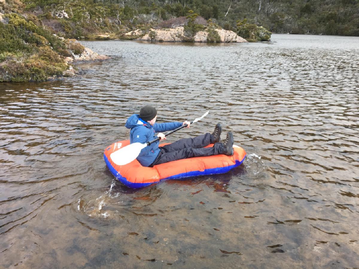 When I got back to camp, Dash had decided it was time to try out his pack raft. So, he did.