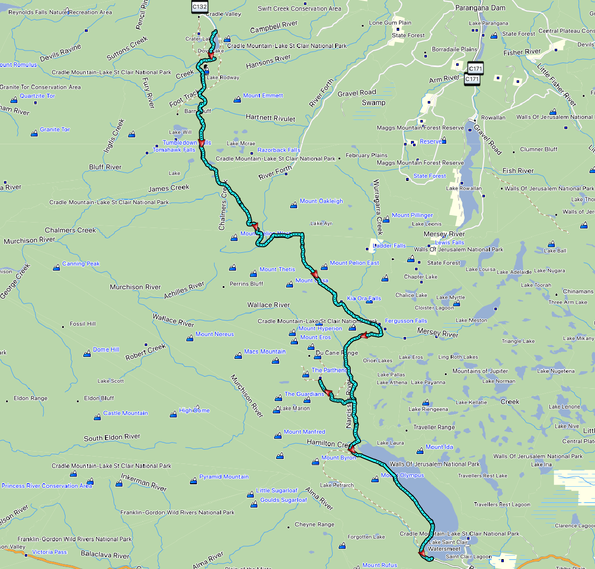 - Day 2. Kitchen Hut to Waterfall Valley, via Cradle Mountain.