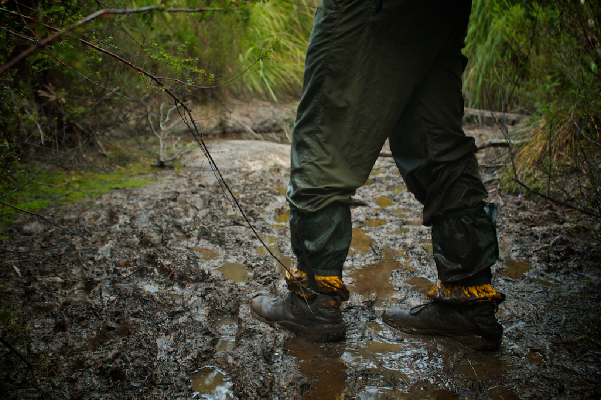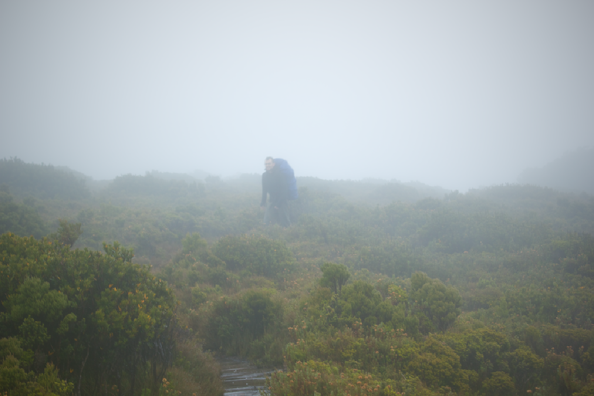 The issue with the mud is that it wears you down. It’s painful, boggy, relentless and demoralising at times. The track isn’t maintained at all. It’s just a small gap to get through the scrub, branches and bushes. There are a few rocky bits, but then it’s straight back into the mud. Sometimes the track is only a foot or so wide, so you’re walking along and then you slip right back into the mud! There’s a lot of slip and sliding.
