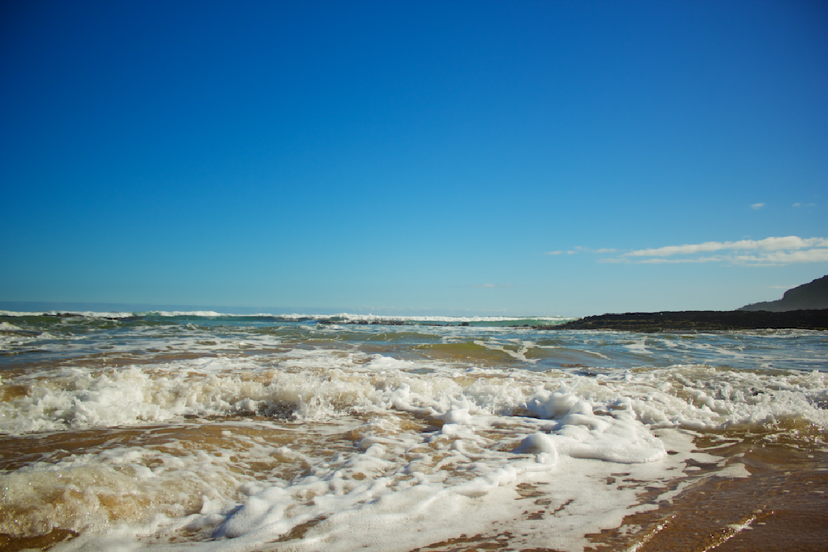 We camped in a top spot, overlooking the beach. The weather was warm and the sky blue. Water was freezing though.