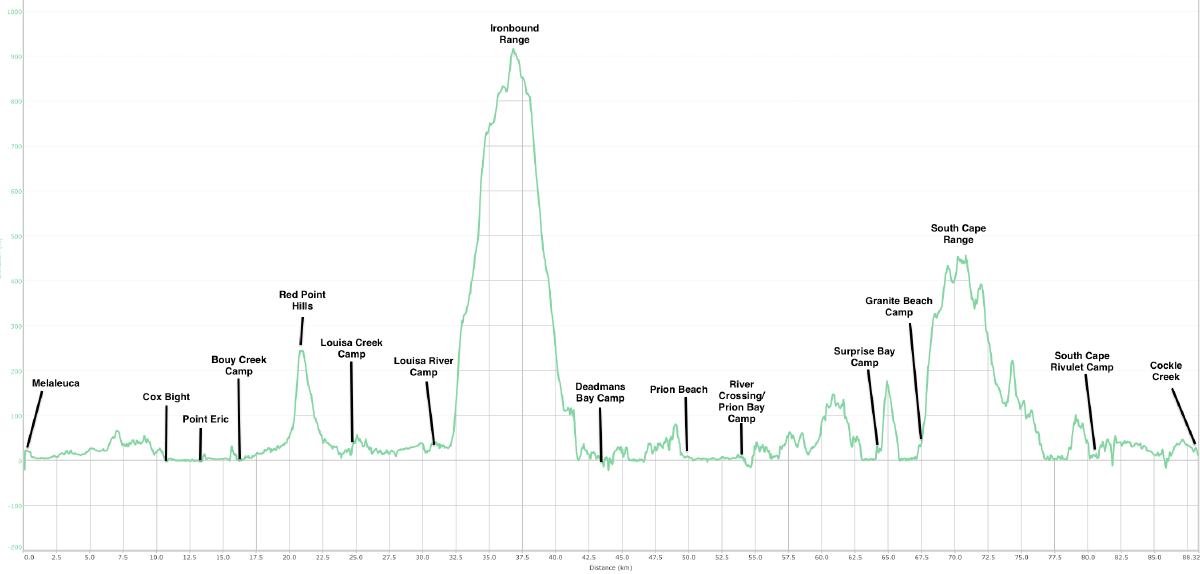 Elevation summary (South Coast Track)