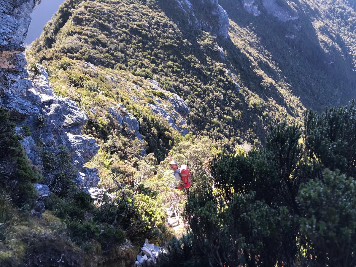 After Taurus, you go down and down - and there’s a few unexpected cliffs to climb down. We pack hauled the packs again, before maneuvering down a crevice.